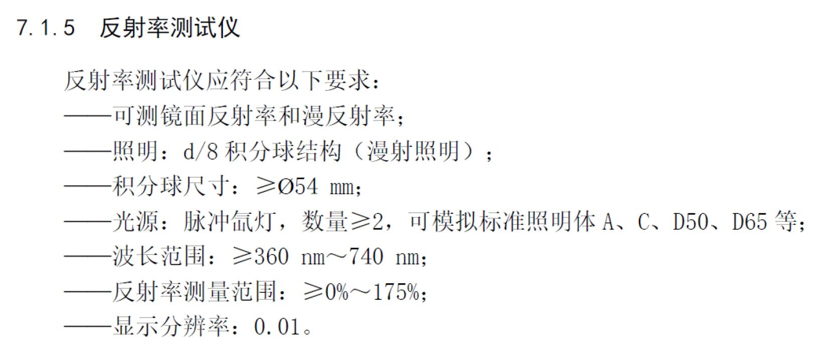反射率测试仪:为保证实现LED屏幕黑场的超低亮度,保证观众的观看体验,标准中规定了针对屏幕关闭时的反射率测试,并指导使用反射率测试仪测试。