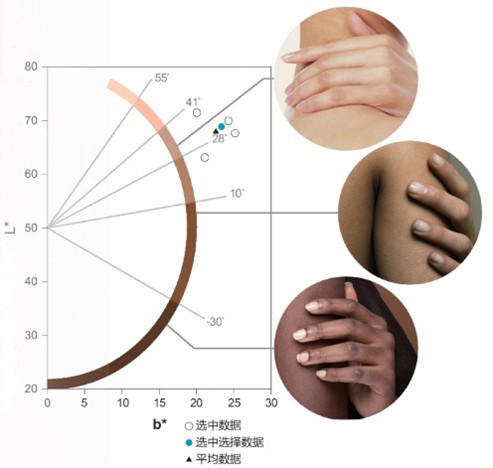 用于确认肤色类型的ITA°图表