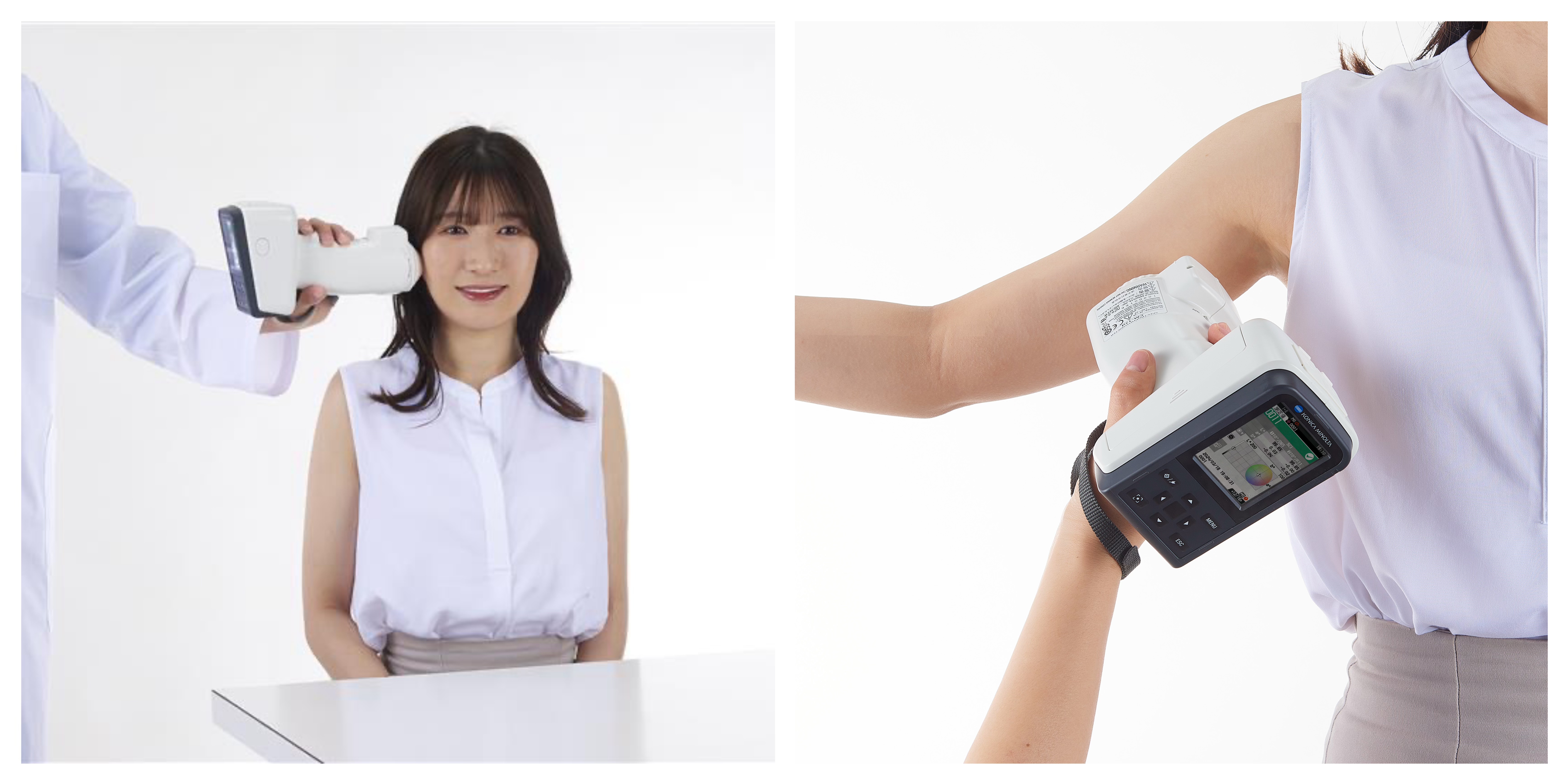 与分光测色计CM-17d配合使用时,相机取景器可让您在确认区域并避开痣或斑点的同时,轻松对准测量位置。此外,测量时拍摄图像将与测量数据一同保存,让您可以通过查看图像来核实测量点。