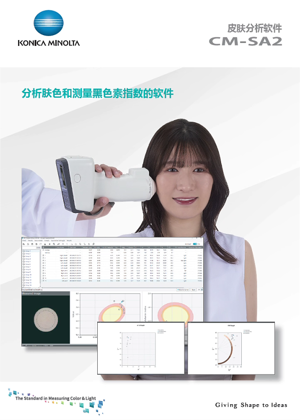 CM-SA2是CM-SA的升级产品,后者在全球化妆品制造商和研究机构中受到高度评价。与柯尼卡美能达分光测色计配合使用时,CM-SA2可同时测量皮肤颜色、黑色素指数和血红蛋白指数,这些参数在化妆品、功能性食品及制药市场中的防晒和色斑研究中具有重要应用。
